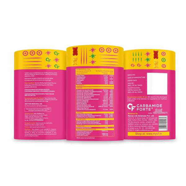 Carbamide Forte Multivitamin Gummies for Women | Multivitamin for Women’ s Hair, Skin & Nails, with Biotin & Antioxidants for Immunity & Probiotics for Digestion | 23 Ingredients – 60 Veg Gummies
