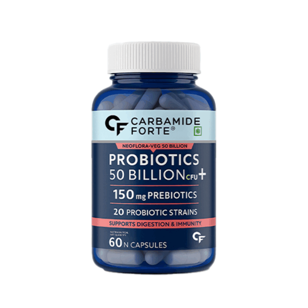 Carbamide Forte Probiotics Supplement 50 Billion CFU Gut Health Supplements with Probiotic | Gut Cleanse with Prebiotics and Probiotics – 60 Capsules