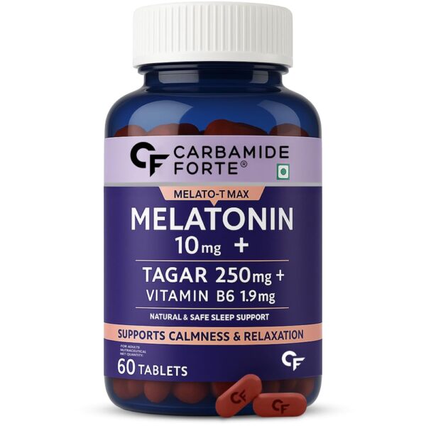 Carbamide Forte Melatonin 10 mg Sleeping Pills with Tagar 250 mg | Sleep Supplement for Men & Women | Melatonin Tablet for Restful Deep Sleeps – 60 Veg Tablets.