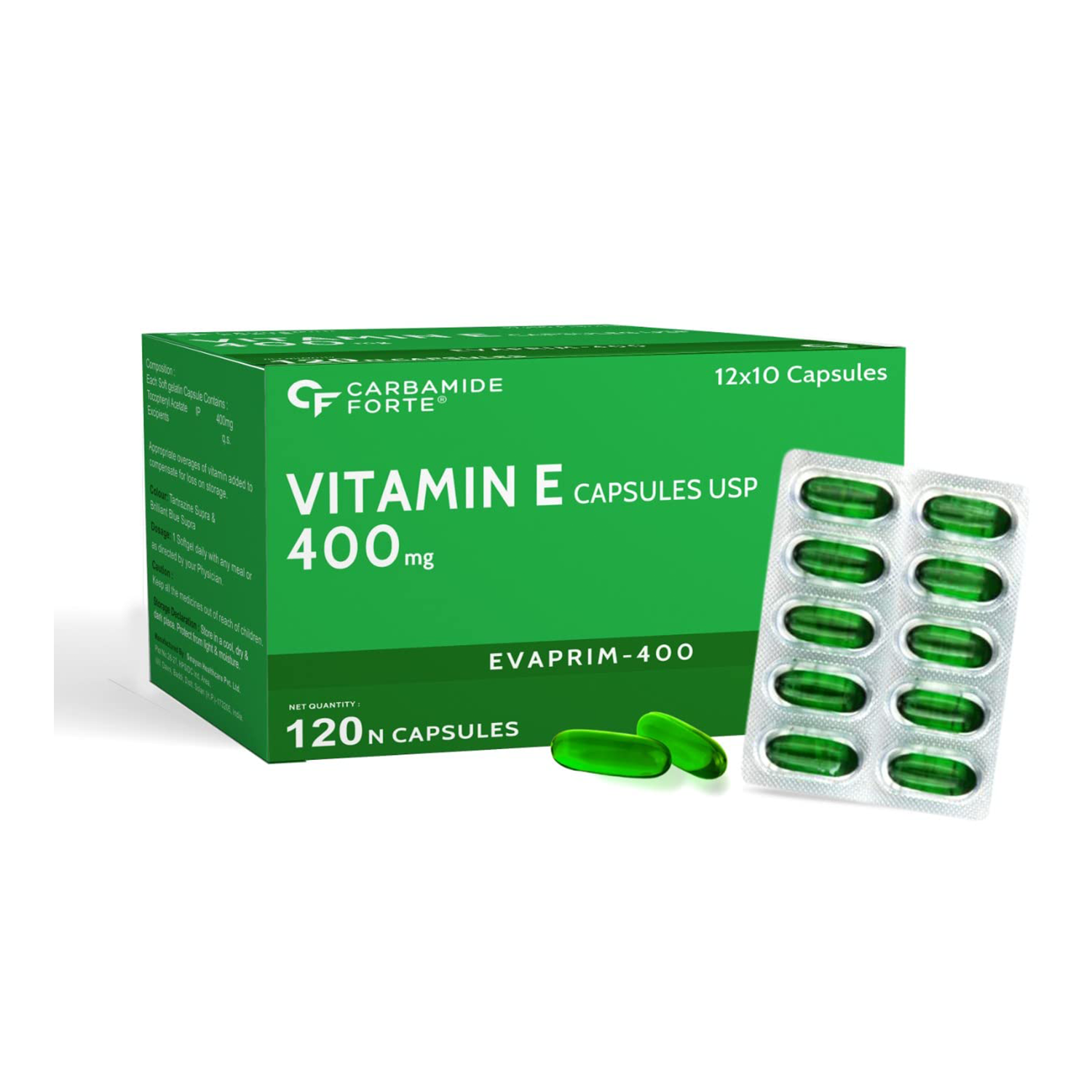 Carbamide Forte 400 mg Vitamin E Capsules for Face and Hair | 100% Natural Vitamin E Supplement with Vitamin E Oil | Paraben Free – 120 Capsules