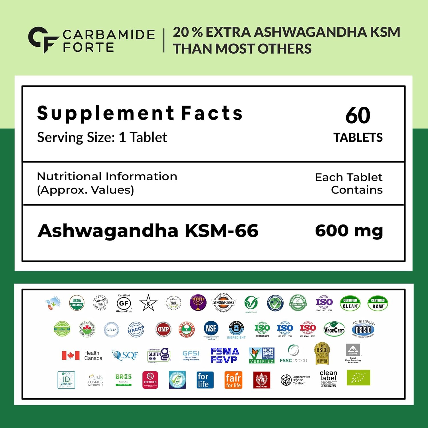 Carbamide Forte Ashwagandha KSM66-600 mg I KSM 66 Ashwagandha Supplements Support Stress Management & Muscle Recovery I ashwagandha tablets for Men & Women – 60 Tablets