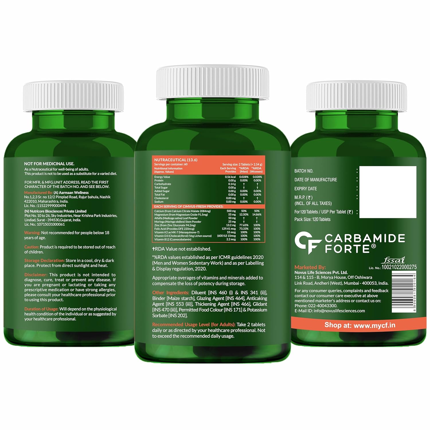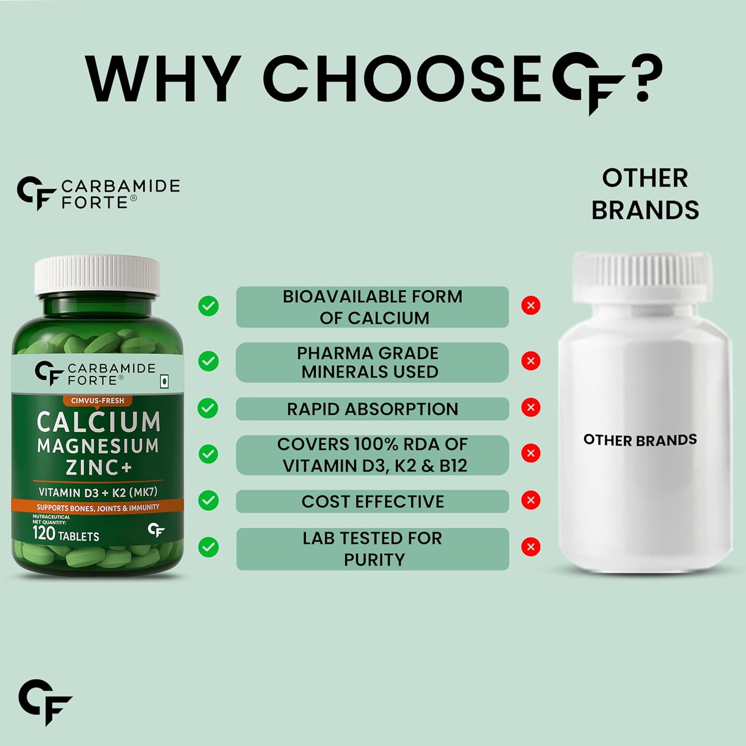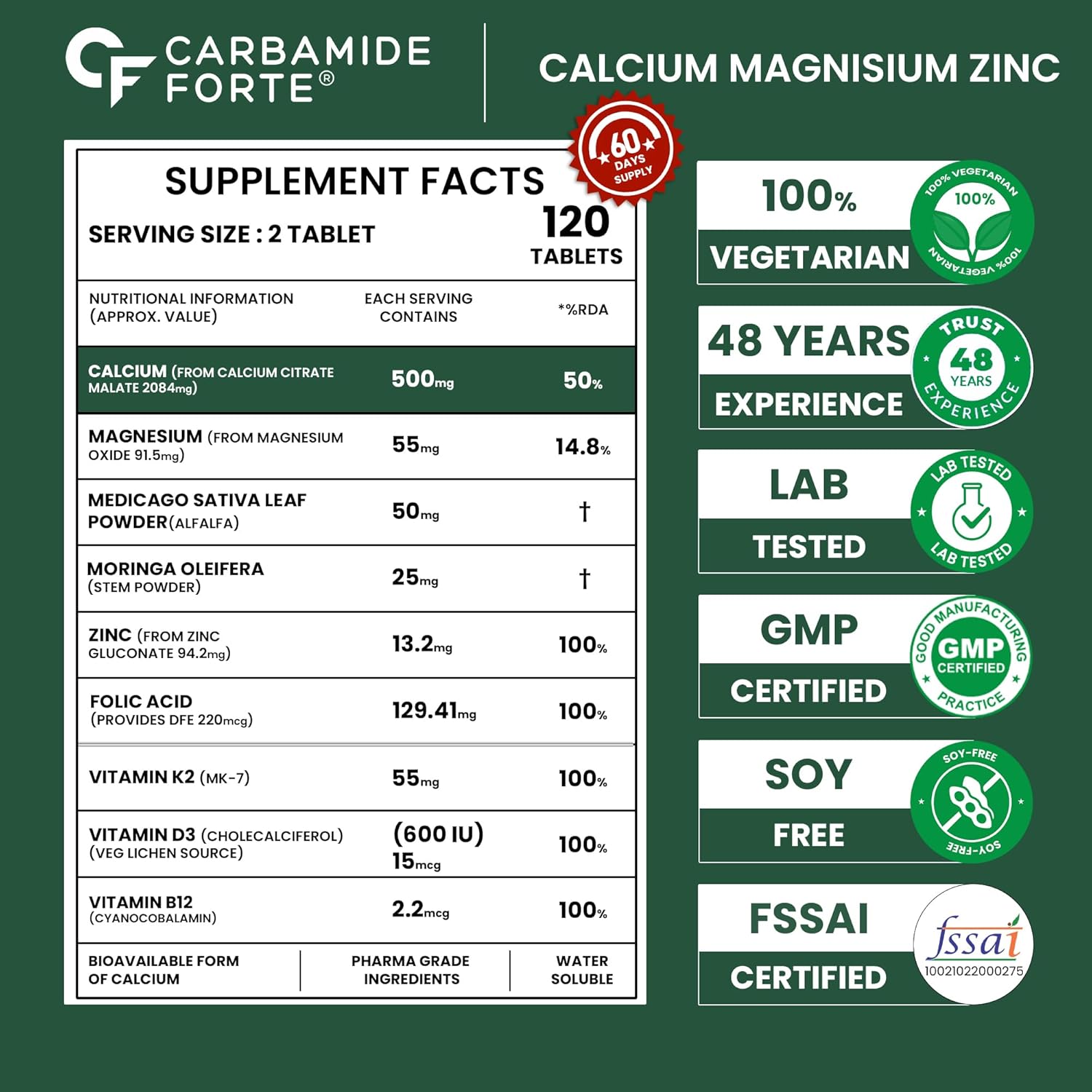 Carbamide Forte Calcium And Vitamin D3 Tablets | Calcium Tablets For Women & Men | Calcium Magnesium Zinc Supplements with Vitamin D3 + K2 MK7 & Vitamin B12 – Bone Health & Joint Support – 120 Tablet