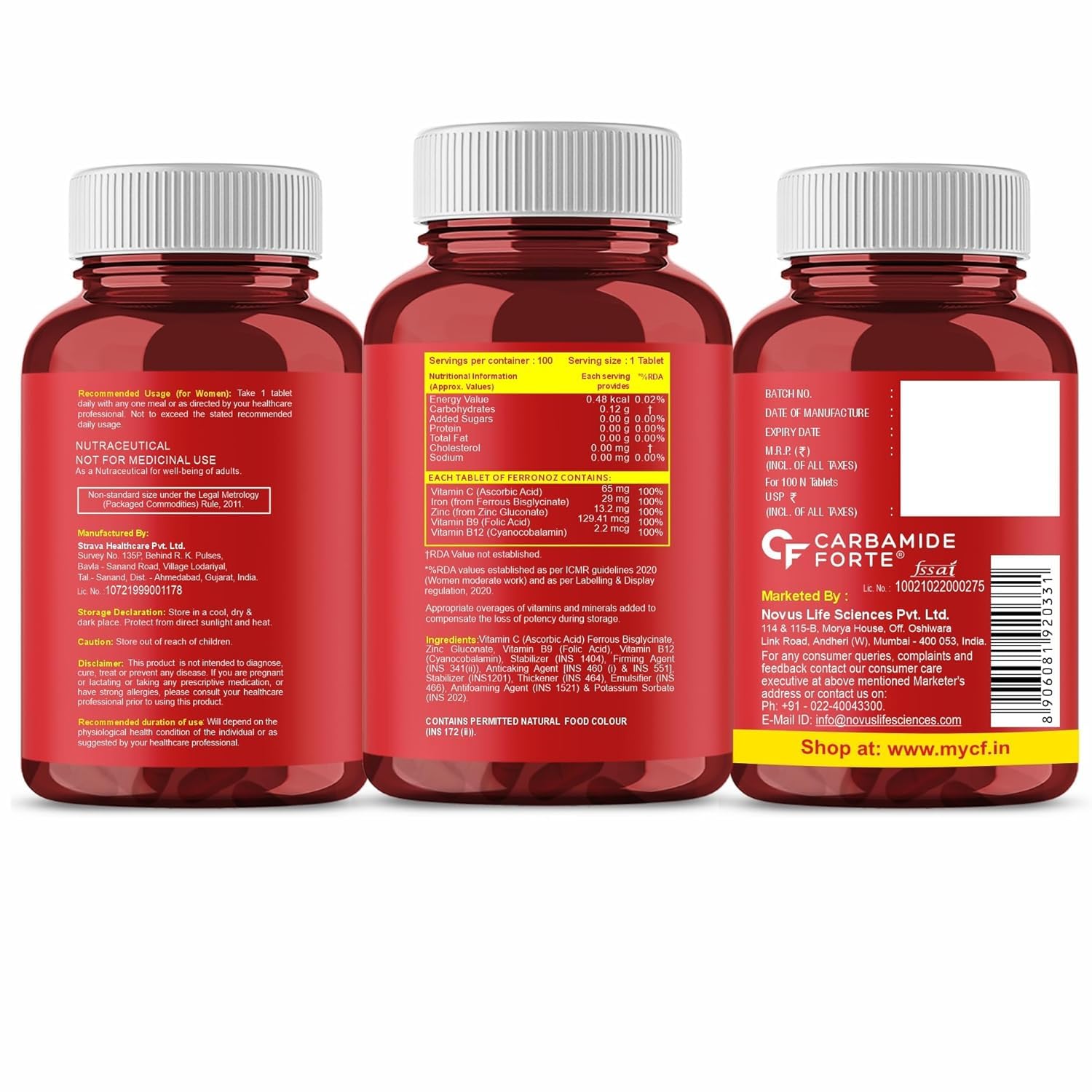 Carbamide Forte Chelated Iron Supplement for Women and Men | Folic Acid Tablets for Pregnancy | Hemoglobin Booster | 100 Veg Tablets for Hair Growth with Iron Bisglycinate