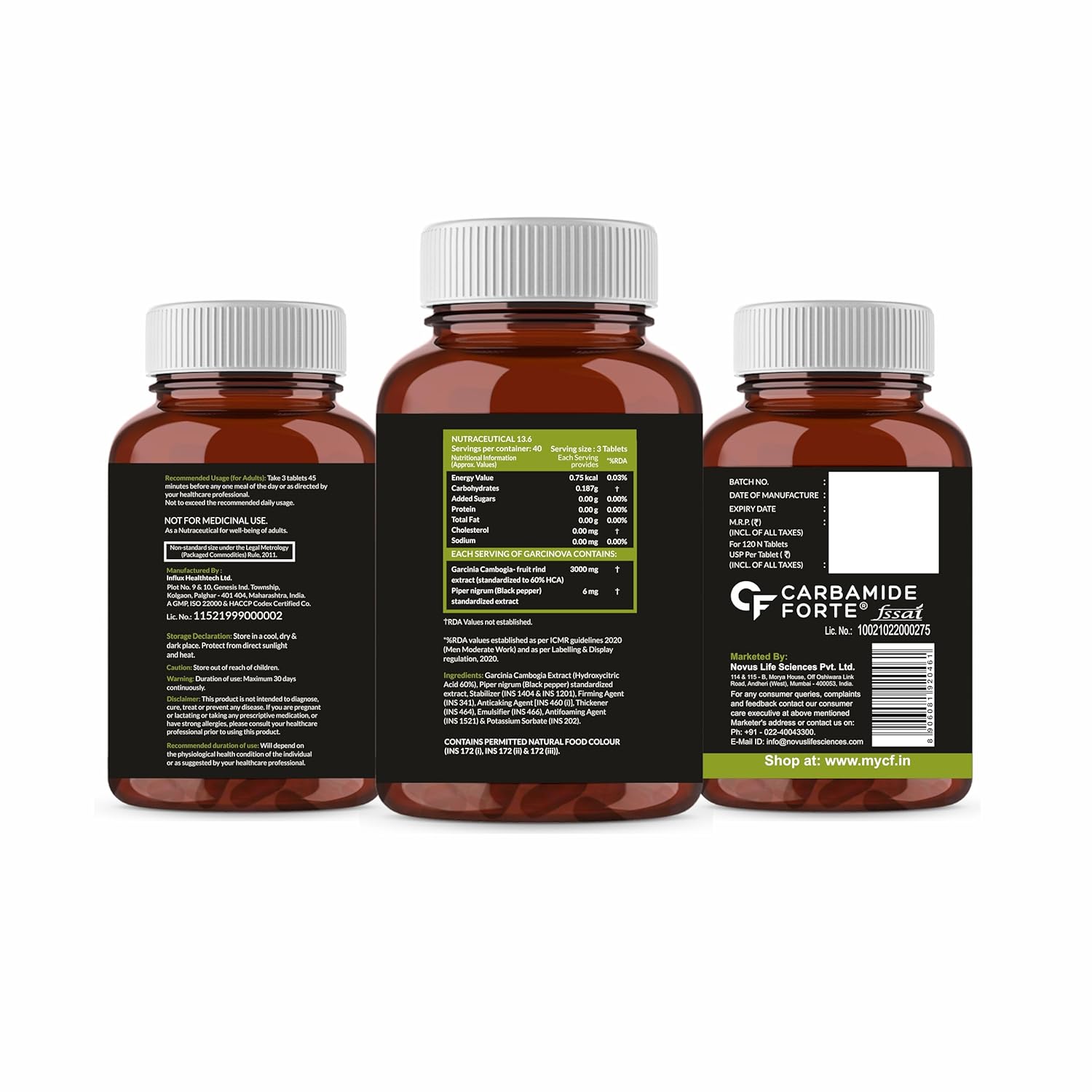 Carbamide Forte Garcinia Cambogia 3000mg 60% HCA & 6mg Piperine Per Serving | Weight Loss Supplement- 120 Veg Tablets