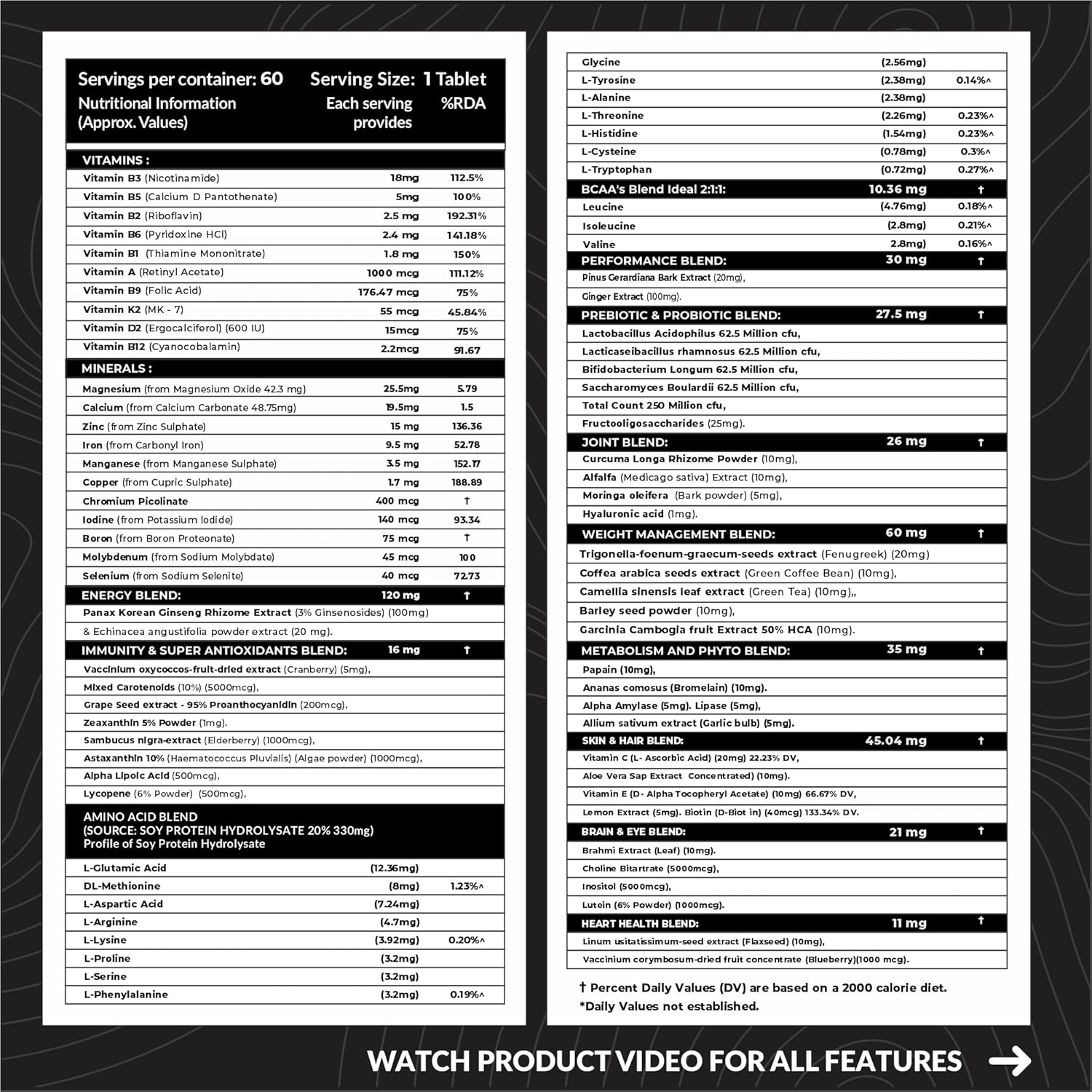 Carbamide Forte Multivitamin Tablet for Men & women | Multi Vitamin for Men Gym & sports | Multivitamins for Energy & Fitness | Multivitamin for Men gym with BCAA, Amino Acids, Probiotics & Antioxidants – 81 Ingredients – 60 Tablets