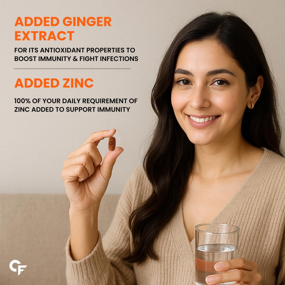 • 𝗭𝗜𝗡𝗖 𝗚𝗟𝗨𝗖𝗢𝗡𝗔𝗧𝗘 𝗜𝗦 𝟑𝗫 𝗕𝗘𝗧𝗧𝗘𝗥 𝗔𝗕𝗦𝗢𝗥𝗕𝗘𝗗 𝗧𝗛𝗔𝗡 𝗭𝗜𝗡𝗖 𝗦𝗨𝗟𝗣𝗛𝗔𝗧𝗘 : Our immunity tablets for adults contain Zinc Gluconate instead of Zinc Sulphate. Zinc is a tricky mineral when it comes to absorption by your body. Don’t settle for the Zinc Sulphate given by other vitamin C capsules. Your body absorbs Zinc Gluconate 3 times more than Zinc Sulphate.