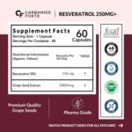 Carbamide Forte Resveratrol 250mg with Grape Seed Extract | Pharma Grade Resveratrol Supplements for Max Absorption – 60 Veg Capsules