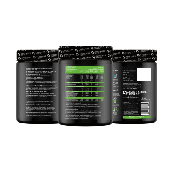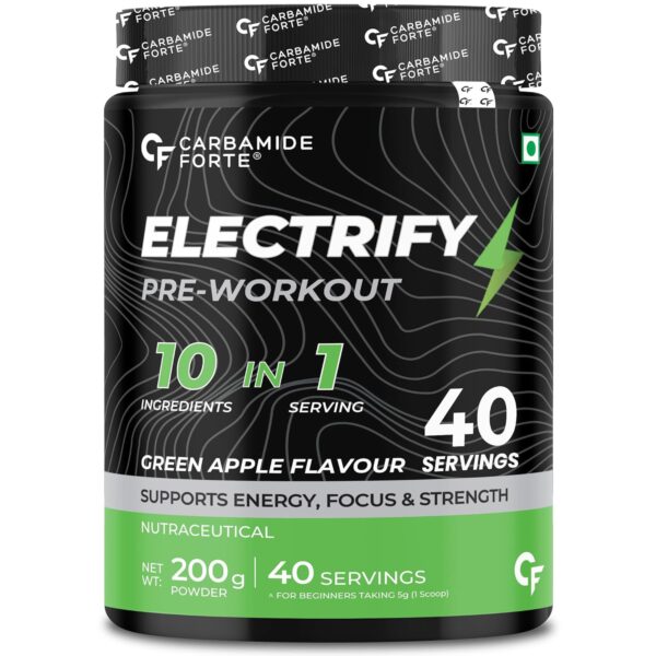 Carbamide Forte Pre Workout for Men & Women | Pre Workout Supplement Powder | Preworkout Supplements For Men For Energy, Focus & Strength | Pre-Workout For Men & Women GreenApple Flavour | Pre Workout For Women With 40 Servings – 200g