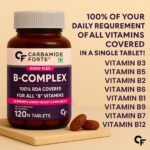 Carbamide Forte Vitamin B-Complex Tablets – 100% RDA for B Vitamins with B1, B2, B3, B5, B6, B9 & Vitamin B12 | Vitamin B Complex Supplements for Women & Men – 120 Vegetarian Tablets