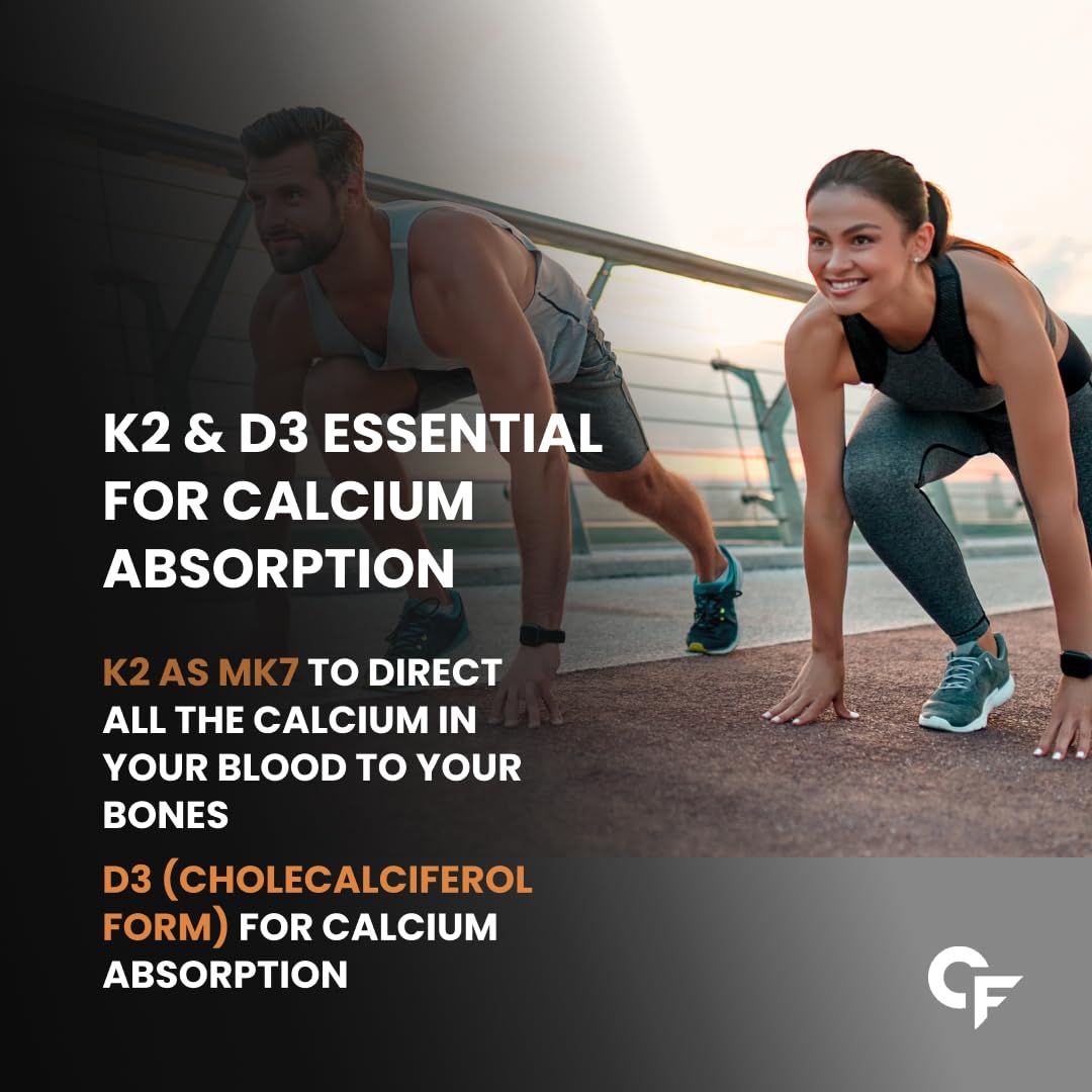 - 𝗦𝗨𝗣𝗣𝗢𝗥𝗧𝗦 𝗦𝗧𝗥𝗢𝗡𝗚 𝗕𝗢𝗡𝗘𝗦 & 𝗕𝗘𝗧𝗧𝗘𝗥 𝗖𝗔𝗟𝗖𝗜𝗨𝗠 𝗔𝗕𝗦𝗢𝗥𝗣𝗧𝗜𝗢𝗡: Vitamin k2 & d3 supplement may Support optimum bone density with our Vitamin D3 K2 supplements, facilitating better calcium absorption for strong, healthy bones.