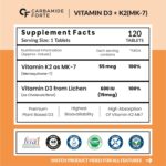 Carbamide Forte Vitamin D3 K2 | Vitamin D3 K2 Supplement for Bone & Heart Health | Vitamin D tablets with Vitamin K2 MK7 | Premium Vitamin D3 supplement with K2 for Wellness -120 Veg Tablets