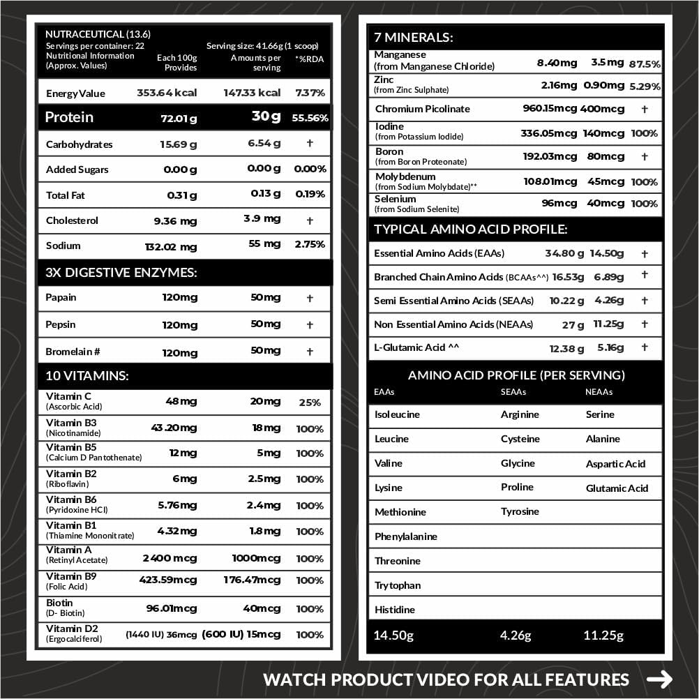 - 𝐀𝐃𝐃𝐄𝐃 𝐌𝐔𝐋𝐓𝐈𝐕𝐈𝐓𝐀𝐌𝐈𝐍 & 𝐌𝐈𝐍𝐄𝐑𝐀𝐋𝐒 𝐂𝐎𝐕𝐄𝐑𝐈𝐍𝐆 𝟏𝟎𝟎% 𝐃𝐀𝐈𝐋𝐘 𝐑𝐄𝐐𝐔𝐈𝐑𝐄𝐌𝐄𝐍𝐓 : With our isolate whey protein 1_kg concentrate, You do not need to take a multivitamin separately—each serving of our whey isolate protein 1kg is fortified with 10 essential vitamins and 7 minerals, covering 100% of the daily requirements for most nutrients. This addition in our whey protein isolate 1_kg eliminates the need for separate multivitamin supplements.These essential nutrients support energy, immunity, and muscle maintenance—a convenient all-in-one supplement whey isolate protein 1kg concentrate for active lifestyles,holistic health alongside muscle building.